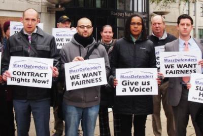 Although those who work in public defenders offices are paid by the state and receive benefits and pensions from the state, they were never written into state law as employees of CPCS, and, therefore, are not permitted to collectively bargain for increases in wages or improvements in working conditions.