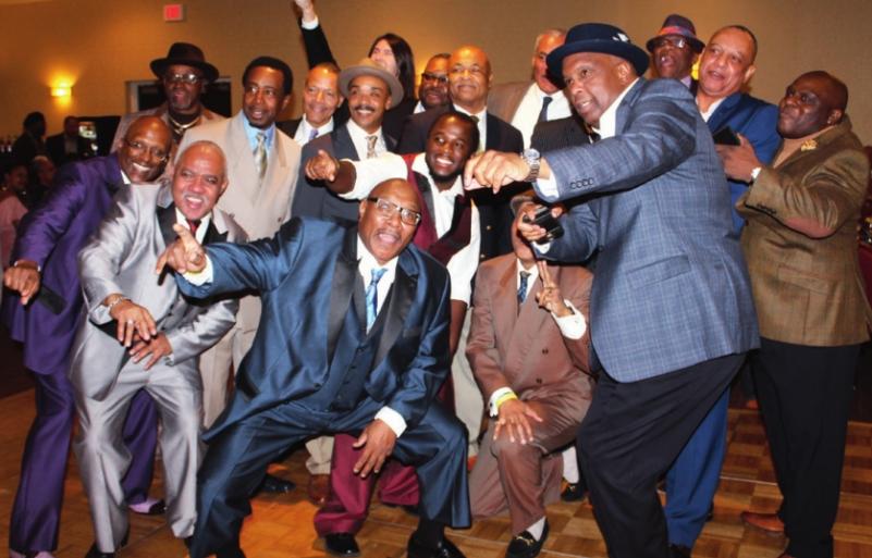 English High men woop it up for the camera on Sunday, Nov. 12 at the Dedham Holiday Inn. The group “English High in the ’70s” held a reunion dinner/dance to help alumni keep in touch with each other. The 200th anniversary of the school will be in 2021.