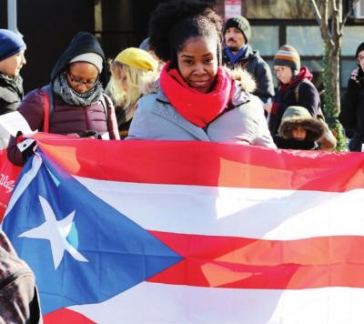 More than 100 people on Sunday marched from the South End’s Villa Victoria down Dartmouth Street and to Copley Square to support the end of what the radical Boston-based group Raíces Borikén Collective calls the “colonization” of Puerto Rico.