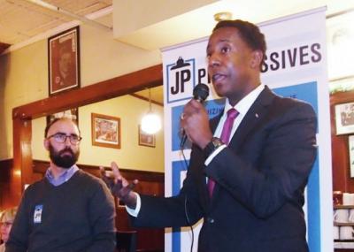He told JP Progressives activists he is willing to take the same political risks at the state level to invest in the state’s infrastructure, citing the $2 billion shortfall in the state’s Chapter 70 school funding formula that he says is shortchanging schools across the state.