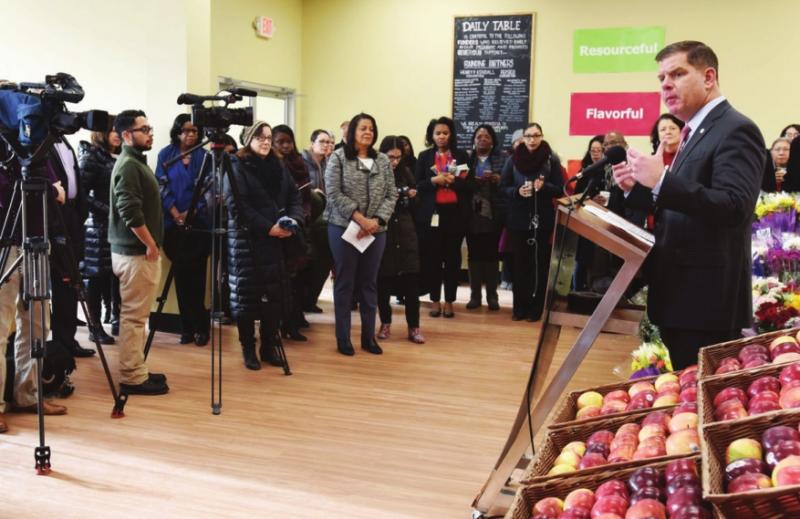 At the ribbon-cutting ceremony on Friday, Daily Table founder and former president of Trader Joe’s Doug Rauch said, “Daily Table is designed around the challenge of tackling food security and access to healthy and nutritious food in a dignified setting where people have a sense of agency by choosing and providing for their family.”