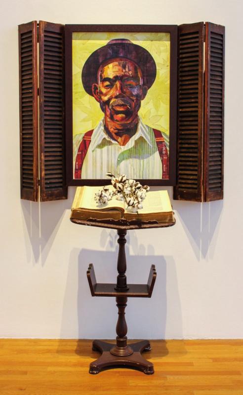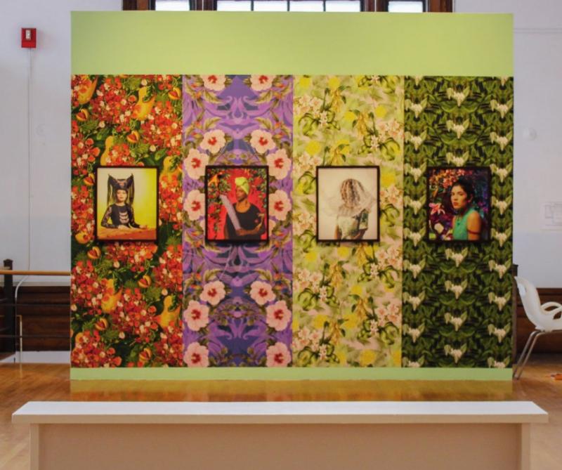 In the lower-level entrance to the exhibit, a few of Hendricks’ works are displayed alongside a wall of printed Instagram photos fans posted after his death. Though Hendricks worked in a number of media, he is most well known for his life-sized oil portraits of black Americans. His goal was to bring to these works a sense of dignity and pride of which African Americans are often deprived. Several of these are on view in the first room, providing a taste of Hendricks’ portrait style, his depiction of black subjects and the widespread impact he had on young art lovers. Upstairs, things get even more interesting.