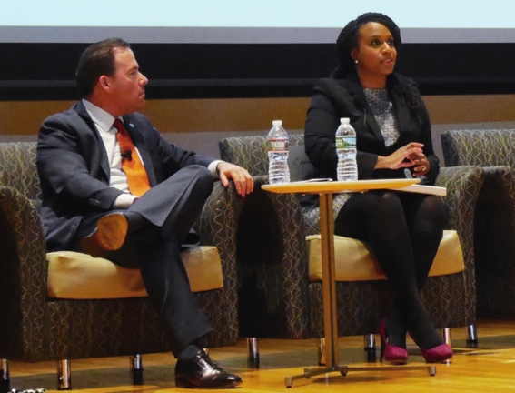 Eastern Bank Chairman and CEO Bob Rivers and City Councilor Ayanna Pressley were part of a panel discussion at the “Solutions to Address Racial and Economic Equality in the Commonwealth” forum Monday night.