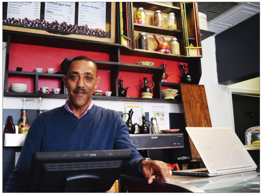 Befekadu Defar, owner of Fasika restaurant, at his new Fasika Cafe business.