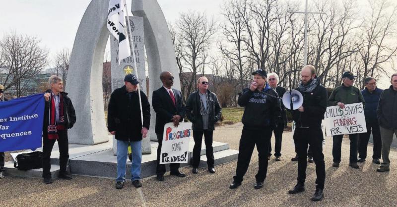 Thomas Kane, director of the Joiner Institute, addresses staff members and supporters at the Vietnam Veterans Day demonstration.