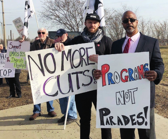 The cuts are part of a schoolwide crisis of staff layoffs, program cancellations and increased tuition rates to offset UMass Boston’s $30 million budget deficit, linked to campus construction projects.