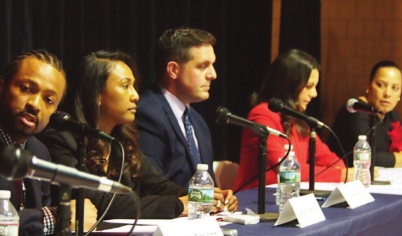 The gloves came off Monday as five candidates for the Suffolk County District Attorney’s office participated in a forum at English High School hosted by JP Progressives, the NAACP Boston Branch and other groups.