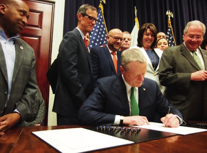 BANNER PHOTO Gov. Charlie Baker signs into law criminal justice reforms that include the elimination of mandatory minimum sentences for some non-violent drug offenses and reforms to the state’s CORI laws.