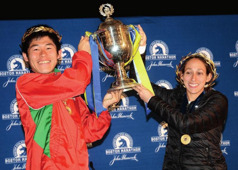 The African winning dynasty was broken in the 122nd running of the Boston Marathon with an upset victory by Yuki Kawauchi of Japan (left) with a time of 2:15:58 and American Desiree Linden with a time of 2:39:54. The cold, wet, windy day proved a significant challenge for all runners. PHOTO: DON WEST See also