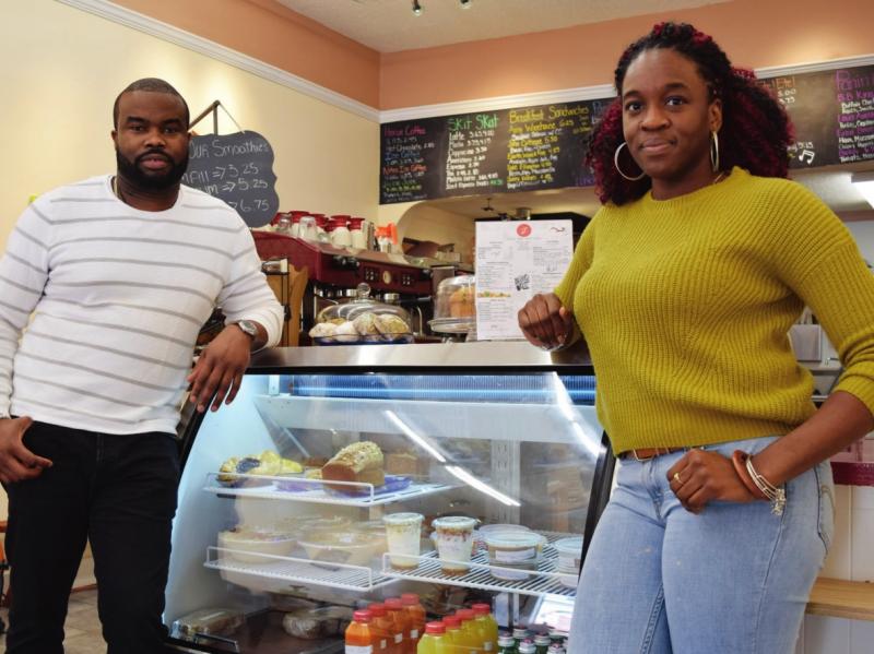 Lionel Wood and Kajaal Cupid, owners of Juice and Jazz Cafe in Codman Square.