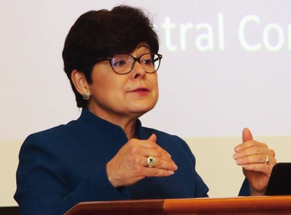 BANNER PHOTO Central Connecticut State University President Zulma Toro delivers a keynote address during the Women of Color in the Academy Conference.