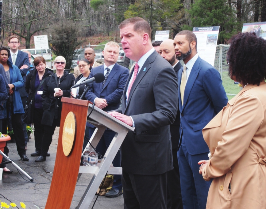 Mayor Martin Walsh announces his administration’s capital budget priorities during a press conference in Franklin Park.
