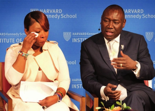Lezley McSpadden (left), mother of Michael Brown, appeared with Benjamin Crump, attorney for the families of Brown, Trayvon Martin and Stephon Clark at a panel titled “The Movement for Black Lives: Justice for Michael Brown 4 Years Later” April 23 at the Harvard Kennedy School. The discussion focused on the killing of Michael Brown, an unarmed teenager, by a white police officer in Ferguson, Missouri, in 2014, which led to widespread protests and the growth of the Black Lives Matter movement. They were joined by attorney Jasmine Rand and documentary filmmaker Jason Pollack.