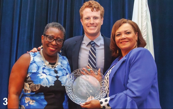 3. Famingham Mayor Dr. Yvonne Spicer, 2018 MWPC Good Guys Honoree Cong. Joe Kennedy, III and MWPC Board President Gail Jackson-Blount