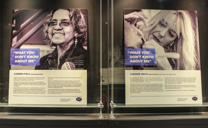 The exhibit imparts a special impact in Gallery J, situated at the heart of the newly renovated Johnson Building. Hundreds of people from all walks of life stroll through the library halls every day. Just like Coe’s subjects, every library guest has a story. Coe hopes viewing the exhibit will cause people to think twice before making snap judgments about their fellow Bostonians.