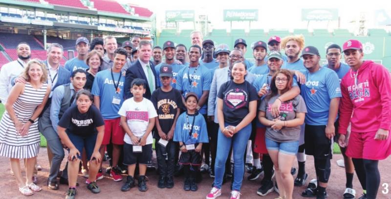 Massachusetts Gov. Charlie Baker, Boston Mayor Marty Walsh, and Red Sox President and CEO Sam Kennedy joined close to 500 BASE supporters, donors, program alumni, staff, parents, student-athletes, and other dignitaries at BASE Ball 5, held at Fenway Park on June 19. The gala celebrated two milestones: the 40th anniversary of the Boston Astros, a pioneering urban baseball program founded by BASE president Robert Lewis Jr. in 1978, and the 5th anniversary of The BASE, which opened in Roxbury in 2013.