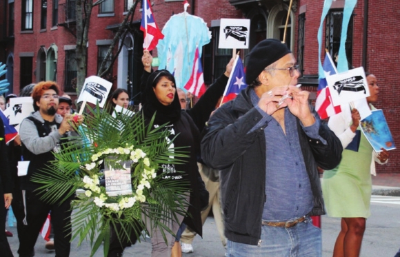 Activists, including members from AgitArte, the Raíces Borikén Collective and United American Indians of New England, called for an end to what they see as the colonization of Puerto Rico by the U.S. government through decades of oppressive policies and economic exploitation.