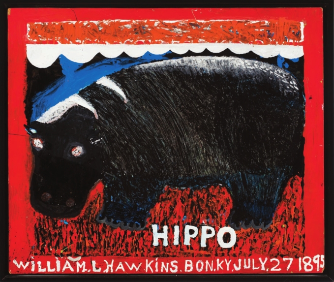 William L. Hawkins “Hippo.” Enamel on masonite. Tufts University Permanent Collections. Gift of Andrew and Linda Safran.