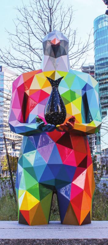 Big business and shiny skyscrapers aren’t the only newcomers to Boston’s rapidly developing Seaport district. “Air Sea Land,” a sculpture installation by Spanish artist Okuda San Miguel now lines Seaport Boulevard, bringing bright colors and organic forms to the neighborhood. Through seven large-scale sculptures, San Miguel explores the themes of evolution, the environment and human influence on the animal world.