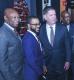PHOTO: DON WEST Entrepreneur Darryl Settles, Black Economic Council of Massachusetts Executive Director Segun Idowu, Mayor Martin Walsh and Urban League of Eastern Mass. President Darnell Williams enjoy a moment during the unveiling of the Community Game Changers mural at Slades Bar and Grill in Roxbury.