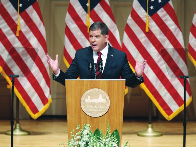 “Instead of building a wall, let’s show them how to build bridges,” Walsh said. “To our national leaders, I say: If you want to learn how to bring people together, not push them apart, look to Boston.”