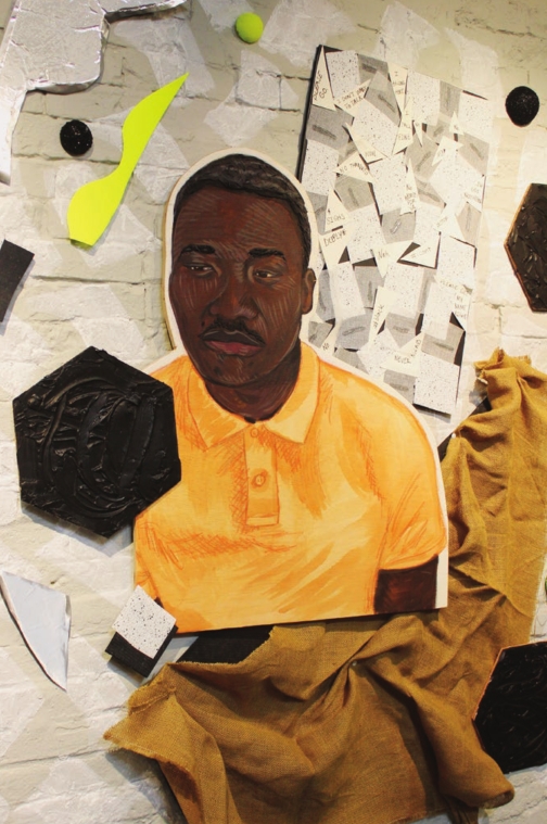 On one wall under Thervil’s artist statement she’s placed literature about racism, identifying it, and preventing it. She’s also created a selfie space for viewers to take their own portraits and bring their own experience to the exhibit. The opening reception for “ENIGMA: Reactions to Racism” is Thursday, February 21.