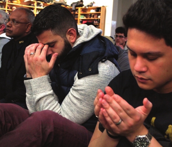Muslims pray at the Islamic Society of Boston Cultural Center Friday.