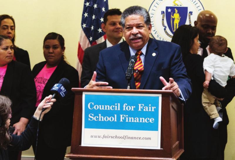 At a press conference at the Massachusetts State House, Juan Cofield, president of the New England Area Conference of the NAACP, explained that the pattern of underfunding disproportionately affects students of color.