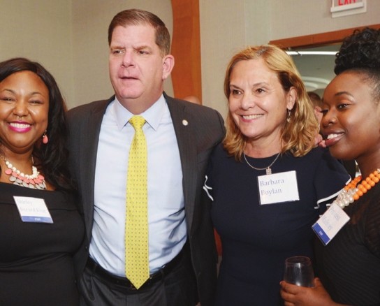 More than 650 guests attended the Boston Health Care for the Homeless Program’s 10th anniversary “Medicine that Matters” Gala, that was held at the Renaissance Boston Waterfront Hotel. Honoree Mayor Marty Walsh poses with (left to right) Shirley Bernard King, Barbara Boylan and Princess Maloney.