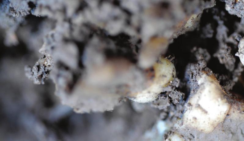 “Liminal” is an hour-long film installation shot in tightly framed pans that go in and out of focus across a hard-to-place landscape. “It’s very painterly in the way she uses the camera,” says assistant curator and exhibition organizer Caitlin Julia Rubin. “It’s not immediately obvious what you’re looking at.” At first there is only dirt, rocks, bugs and a few archeological markers. But as the film goes along the frayed edges of clothing, shards of bone and teeth come into focus.