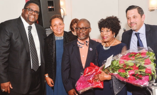 Harvard Street Neighborhood Health Center celebrated its 50th Anniversary October 4, 2019 at The Exchange. (L to R) HSNHC President & CEO Stan McLaren, Board Chair Bonnie Brathwaite, Rev. Mark Arnold (son), 35-Yr Nurse Practitioner Pat Arnold and Brian Shelly, Vice Chair of the HSNHC Board of Directors.