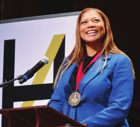 Actress and musician Queen Latifah received the W.E.B. DuBois Medal from Harvard University’s Hutchins Center for Afircan and African American Research. The medal is Harvard University’s highest honor in African and African American studies. See also