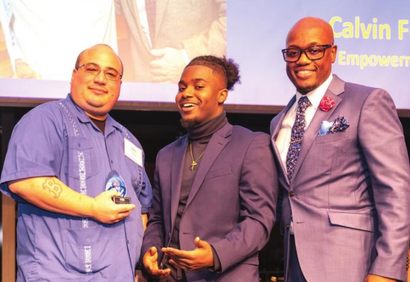 Calvin Feliciano, with Jacory Martin and Abrigal Forrester, is honored during a fundraiser for the Center for Teen Empowerment.