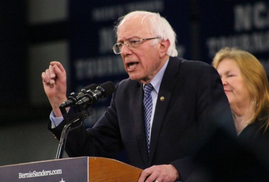 Sen. Bernie Sanders addresses his supporters and volunteers in New Hampshire.