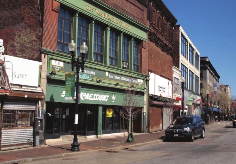 Storefronts on Washington Street remained shuttered last Friday.