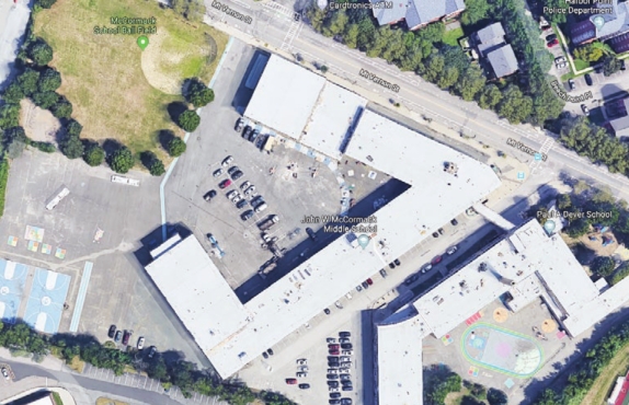 A sports field, playground and basketball courts are currently used by McCormack students and abutters.