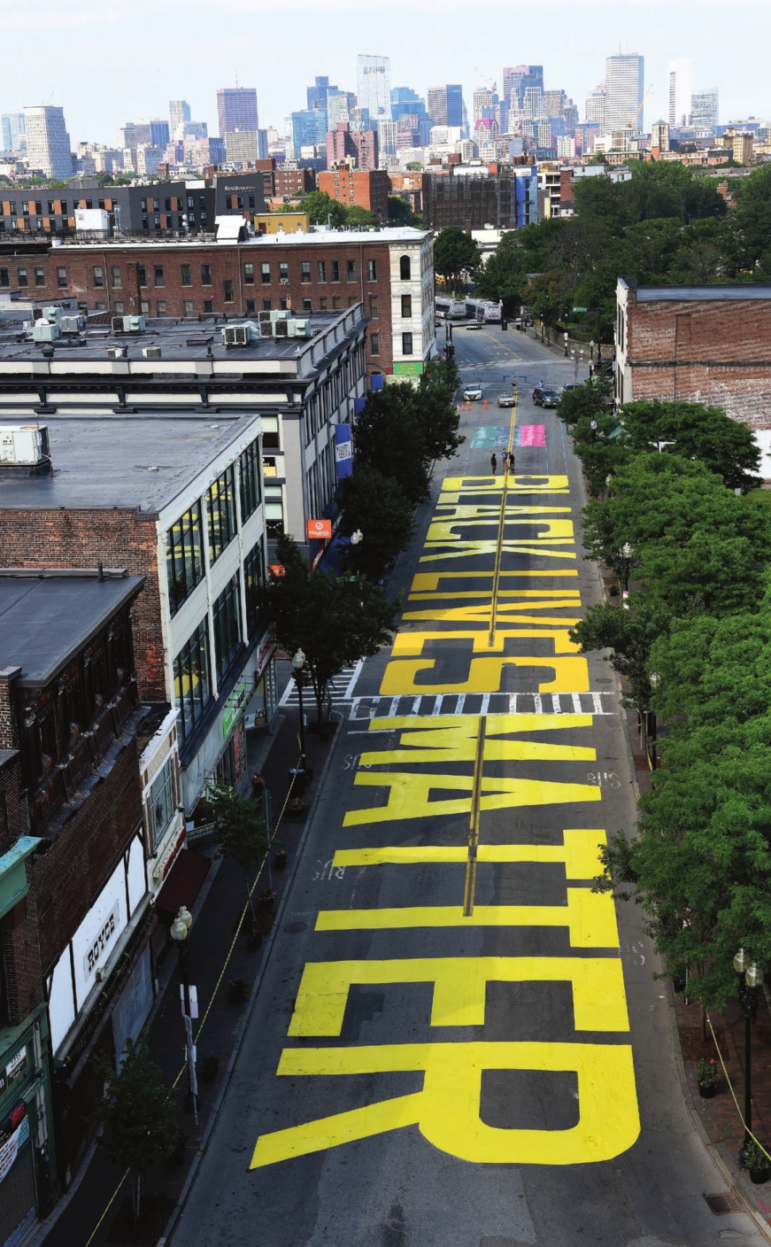 Volunteers painted ‘Black lives matter’ on Washington Street in Nubian Square on a July weekend.