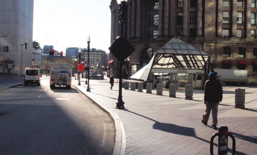 Scant traffic in Dewey Square during morning rush hour underscores the severity of the Governor’s stay-at-home order.