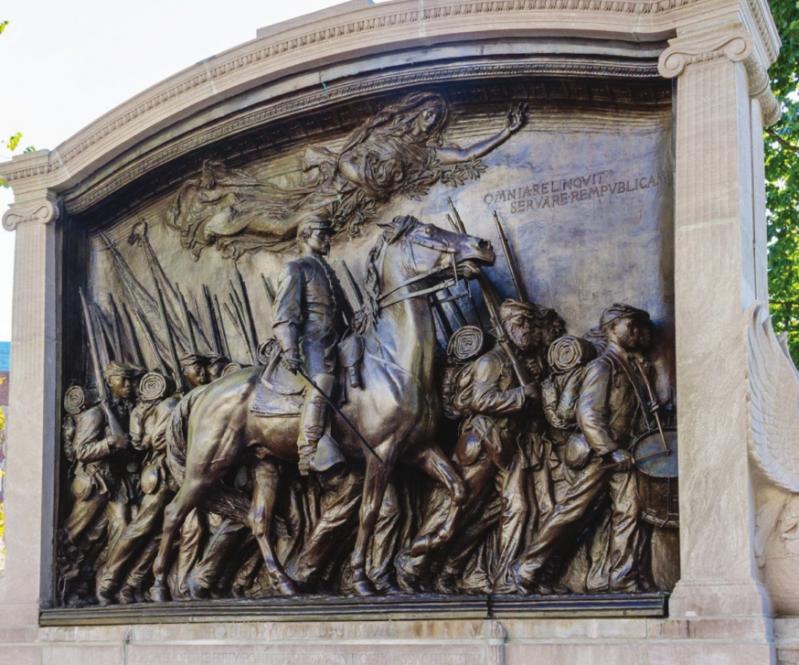 This bas relief monument to the Massachusetts 54th Regiment is currently undergoing renovations.