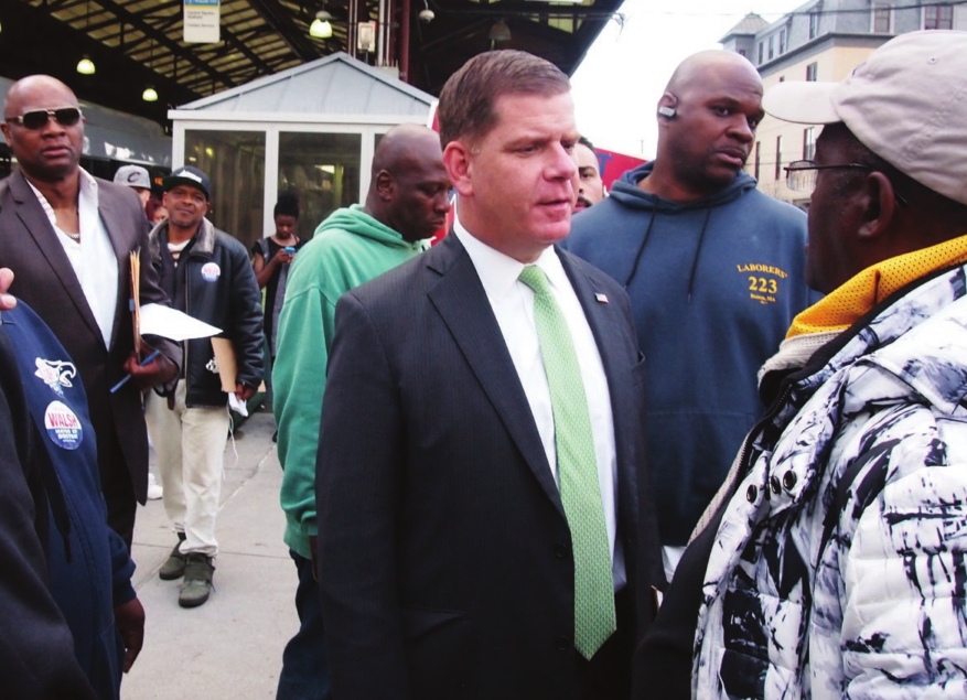 Mayor Martin Walsh collects signatures in Dudley Square during his 2017 campaign for re-election.