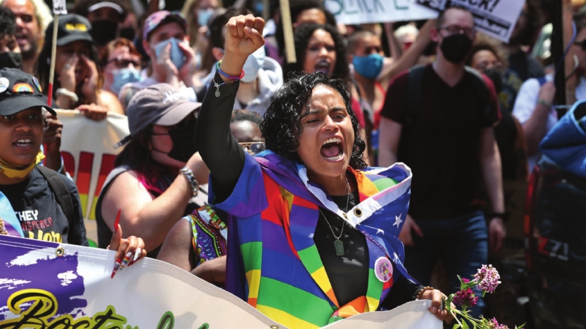 Cindy Guadalupe, center, chants during the Trans Resistance March and Vigil as over a thousand participants march from Nubian Square to Franklin Park in Boston Saturday. The event, which centered Black trans people, also featured musical performances and a vigil for Jahaira DeAlto and other trans people of color the community has lost. Trans Resistance MA called for a boycott of Boston Pride until Pride collaborates with TRMA to meet demands, including diversification of the Boston Pride board.