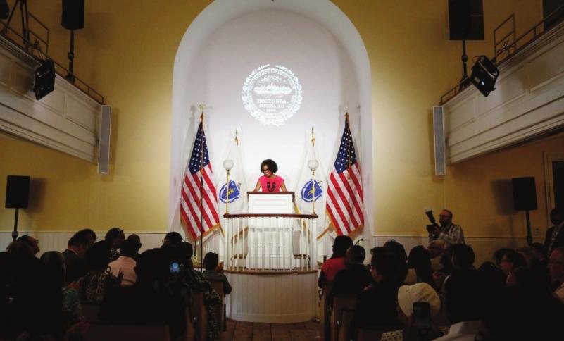 Family, friends, cabinet members, elected officials and press were among the invitees filling the pews at the Museum of African American History on Beacon Hill, a meeting house where Frederick Douglass had held an audience.