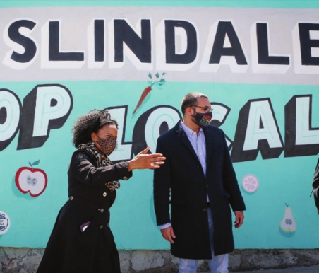 Janey and City Councilor Ricardo Arroyo tour small businesses in Roslindale.