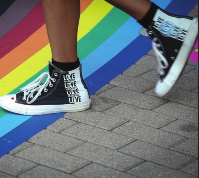 Acting Boston Mayor Kim Janey wears her Converse sneakers during a tour at Converse headquarters in Boston on June 29.