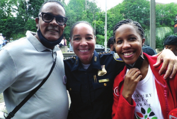 activist Anthony Brewer, Boston Police Superintendent Nora Baston and