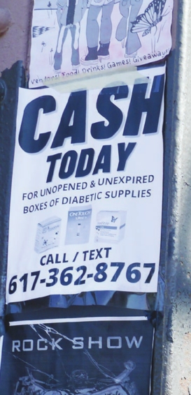Much of the illegally-posted advertising revolves around the black market in the resale of diabetic supplies.