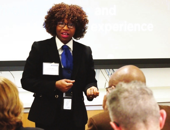 NAACP Branch President Tanisha Sullivan points to the City of Boston,