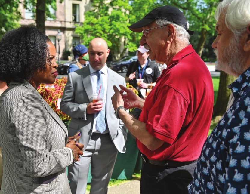 Acting Mayor Kim Janey met with residents of Beacon Hill and Back Bay during the annual Mayor’s Coffee Hour on the Commonwealth Avenue Mall in downtown Boston.