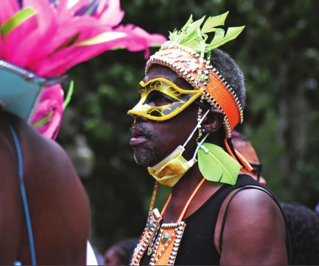 Instead of its normal route down Blue Hill Avenue, the Carnival’s afternoon parade snaked through the park from the entrance at Circuit Drive. The early morning J’ouvert started at its usual spot at the intersection of Blue Hill and Talbot avenues.
