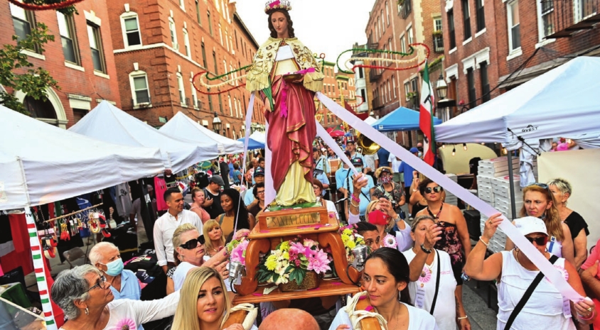 An icon of St. Anthony parades through the North End during St. Anthony’s Feast and celebration.